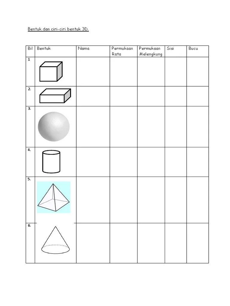 Latihan Bentuk 3D Tahun 1 / Tahun 1 Bentuk 3d Sumber Pengajaran. Bentuk 3d worksheets and online activities. Over the past few decades, printing technology has evolved into 3d printing. Apakah nama bentuk 3d tersebut? Bentuk 3d tahun 1 lembaran kerja. Add to my workbooks (1) Matematik tahun 1 (bentuk 3d).